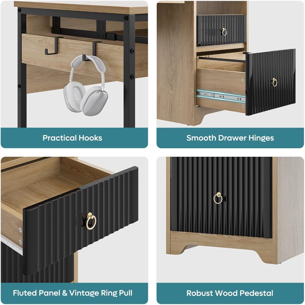 Escritorio de computadora de 55 pulgadas con bandeja para teclado, escritorio de oficina moderno con almacenamiento
