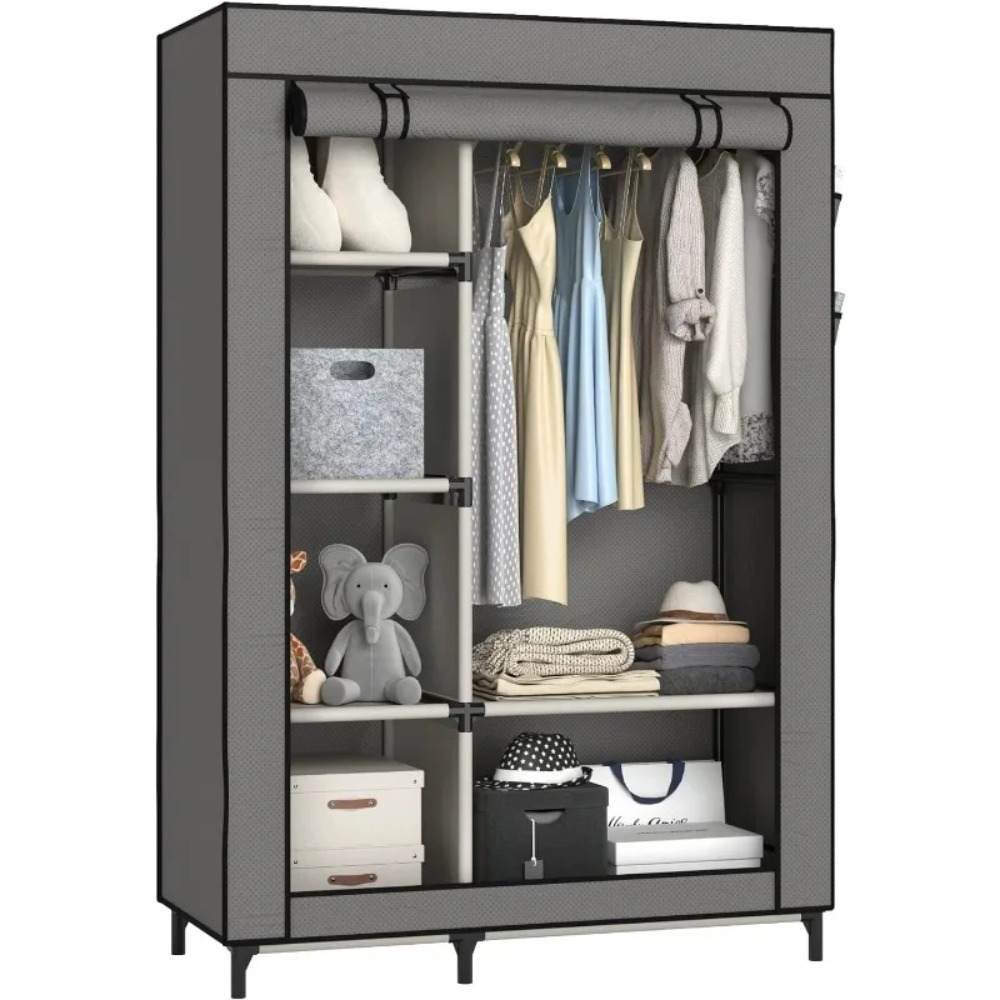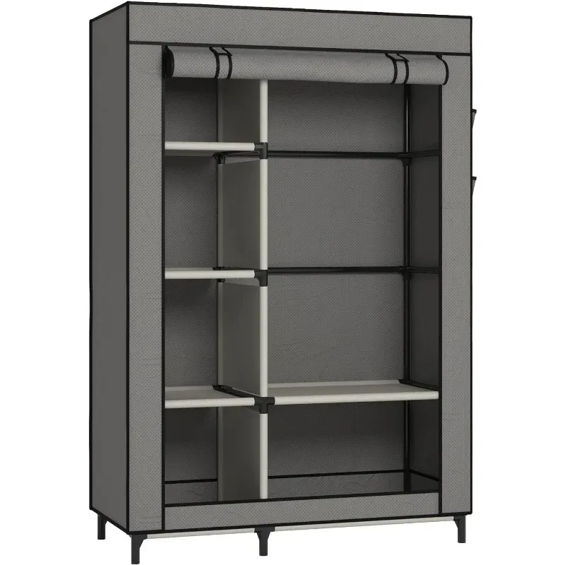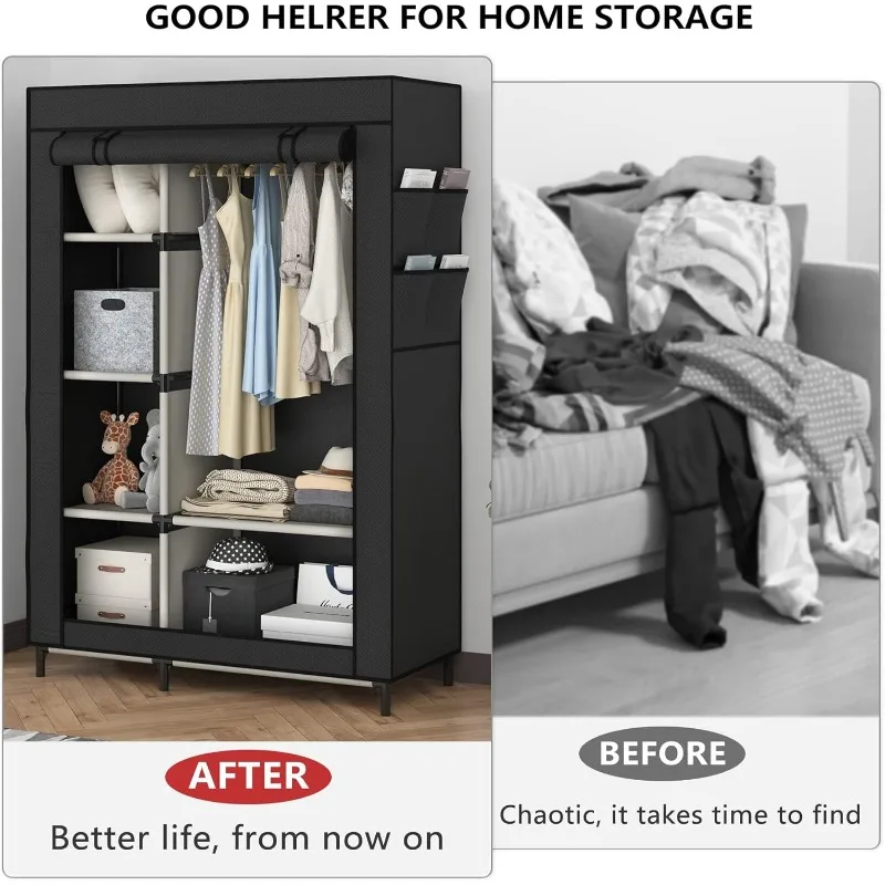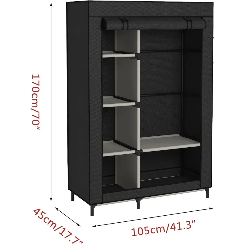 - 【Multifunctional canvas wardrobe】The wardrobe has five compartments and a hanging area. The small compartment can store many small items, such as clothes, shoes, bags, pet supplies, etc. There is a large space in the hanging area for clothes that are long or easy to be creased.