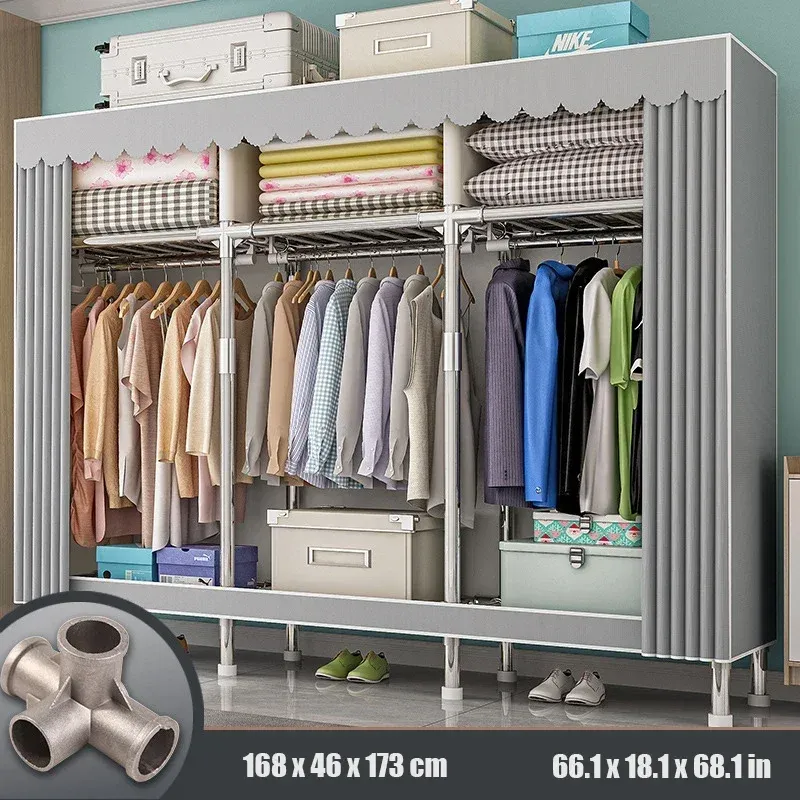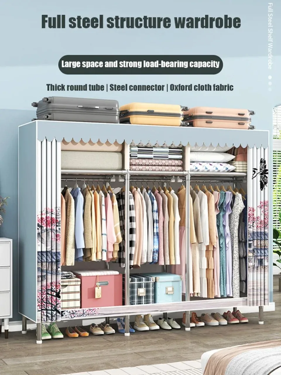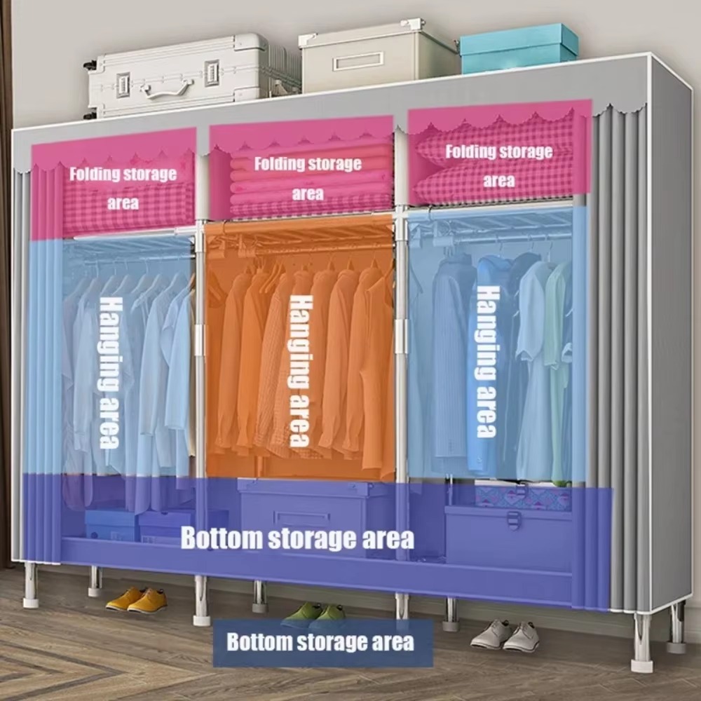 -1. Newly upgraded steel frame wardrobe with high load-bearing capacity for large spaces