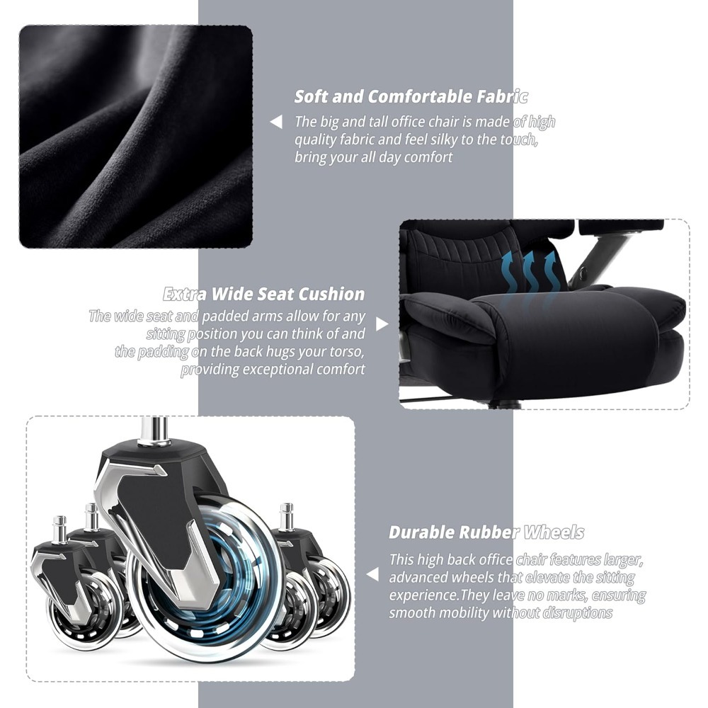 Silla de oficina grande y alta de tela, 317 kg, respaldo alto, silla ejecutiva de tela para computadora