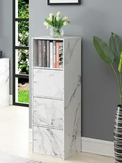 Cabinet features 3 adjustable shelves and 1 fixed shelf to organize everything from office supplies to nonperishable foods