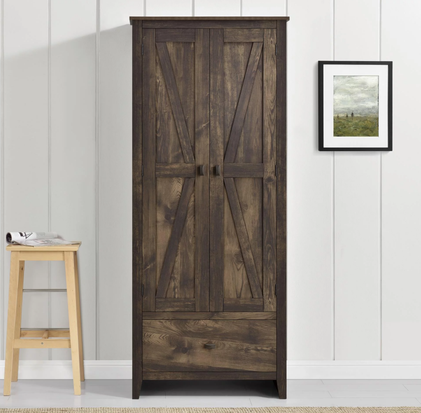 Coordinate your space with additional Farmington Systembuild Evolution Cabinets or Ameriwood Home Farmington bedroom and living room items. Choose from multiple rustic finishes