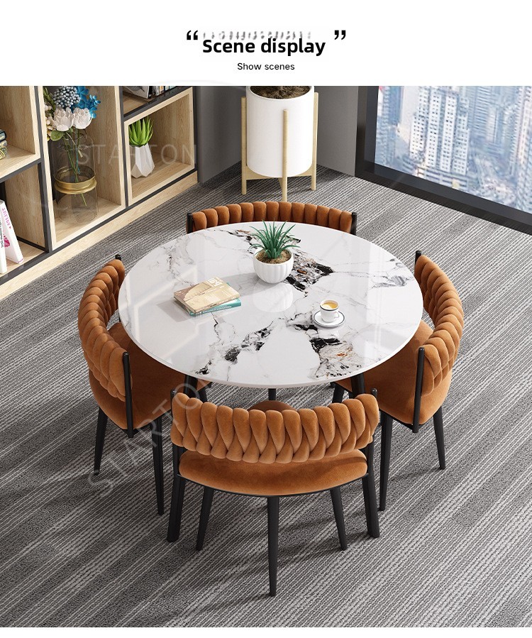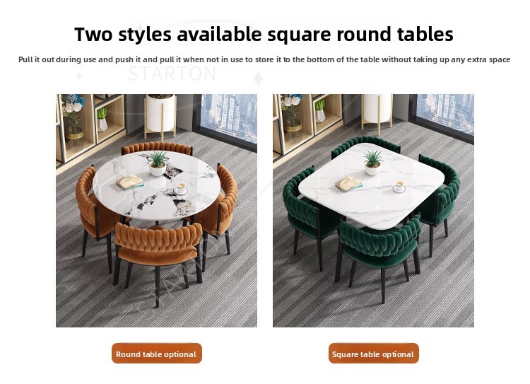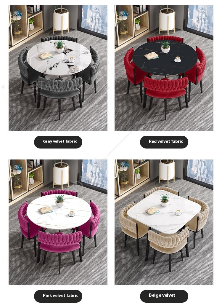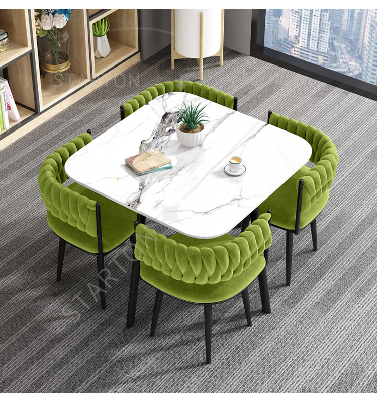 Juego de mesa y sillas de comedor de lujo, ligero y personalizado, con losa de roca cuadrada, para comedor de apartamentos pequeños.
